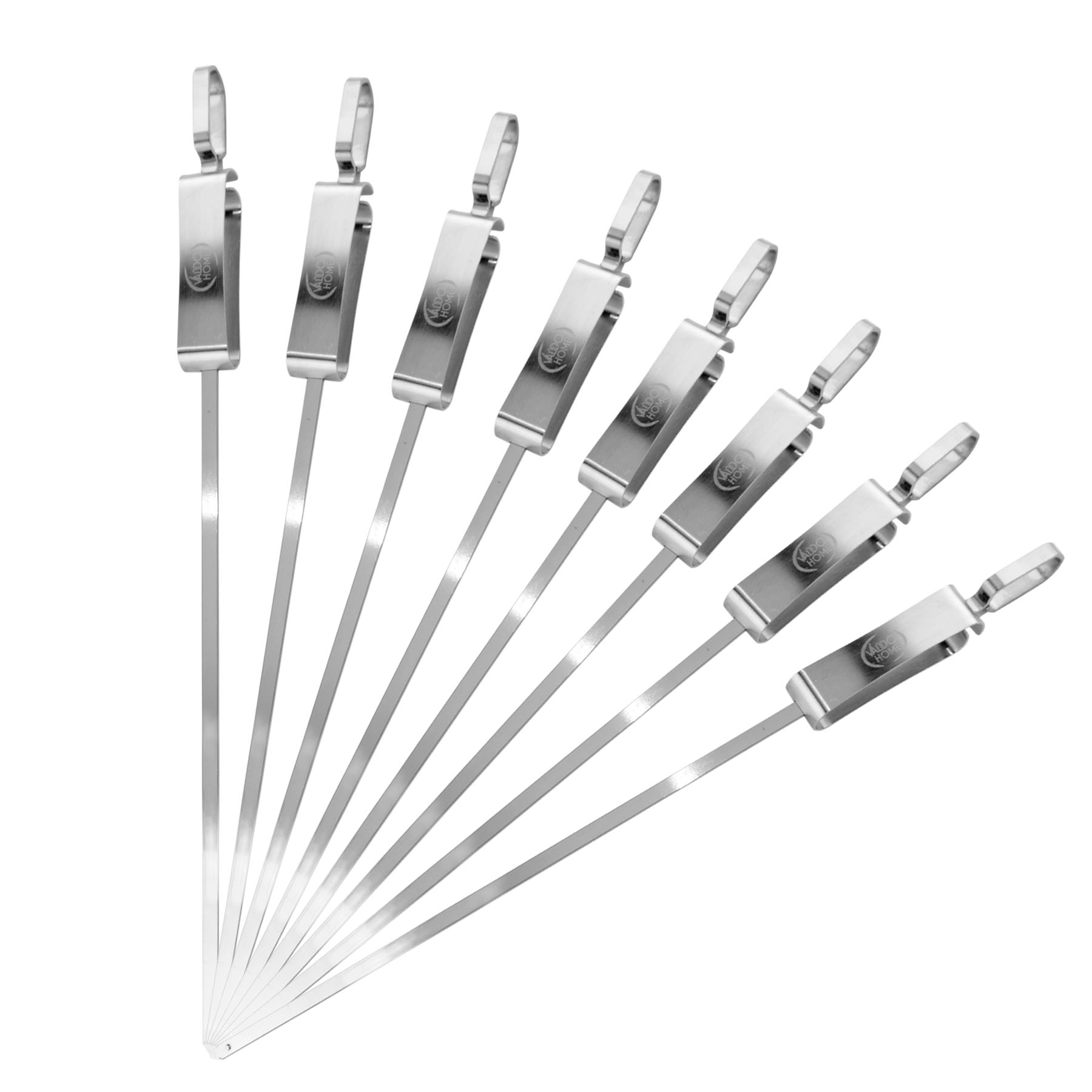 ValdoHome BBQ Stainless Steel Kabob Skewers for Barbecue Stick Grilling, 16 Inch Long with Metal Sliding Handle – 8
